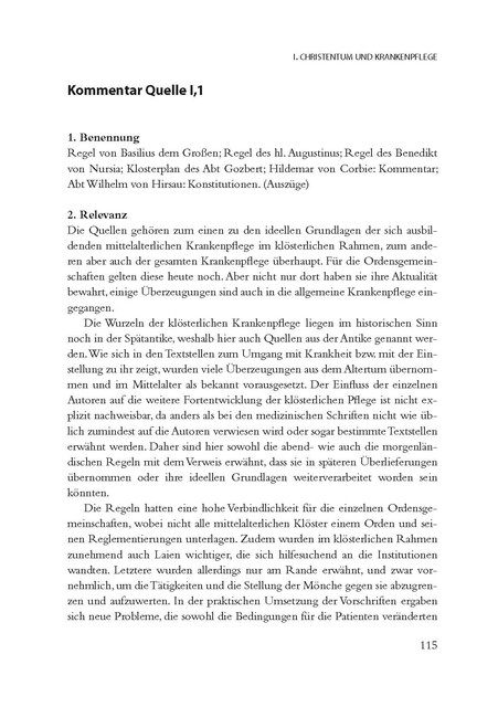 Dieses Buch stellt umfangreiches Quellenmaterial zu folgenden Themenschwerpunkten zusammen: Krankenpflege in Antike, Mittelalter und Früher Neuzeit, Christentum und Krankenpflege, Berufliche Entwicklung der Krankenpflege in Deutschland, Österreich und der Schweiz im 19. und 20. Jahrhundert, Alltag in der Krankenpflege, Geschlechterverhältnisse in der Krankenpflege und Eugenik und Nationalsozialismus. Einführungen stellen jeweils die übergeordneten Zusammenhänge dar, Kommentare zu jeder Quelle leisten eine historische Einordnung. Sie präsentieren den aktuellen Stand der Forschung und erschließen die Quellen so in einzigartiger Weise für Selbststudium und Lehre. Ein ideales Buch für Krankenpflege- und Altenpflegeschulen. Dem Buch liegt eine CD-ROM mit allen kommentierten Quellen bei.