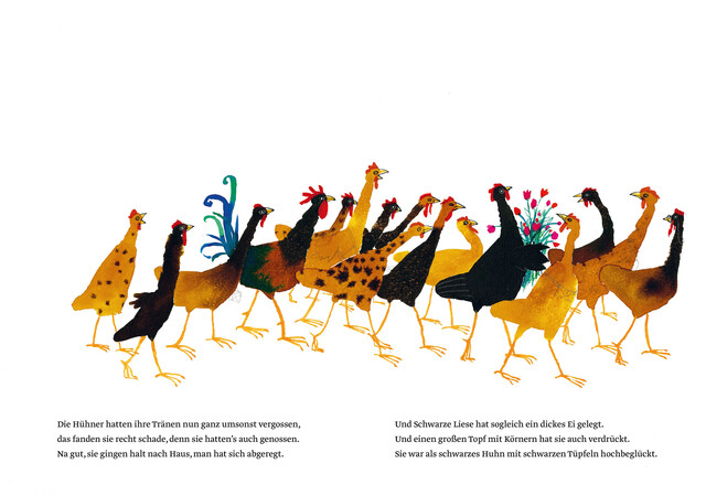 »Ich habe ein wunderbares neues Buch entdeckt - für alle, groß und klein.....und in der Therapie wunderbar zum Vorlesen [...] Ein wunderbarer Anlass, sich selbst ein Tüpfelkleid zu malen oder das schwarze Huhn in mir zu trösten.« (Gabriele Meyer-Enders, Kinder- und Jugendlichenpsychotherapeutin, März 2024)