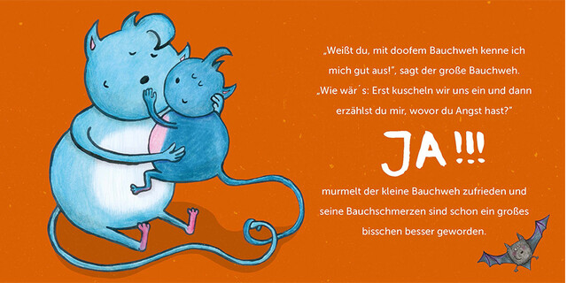 Der kleine Bauchweh sitzt in seiner Höhle und hat ganz schlimme Bauchschmerzen – woher kommen die bloß? Vom zu späten und zu schnellen Essen oder von den Runden in der Achterbahn? War es der Streit mit dem großen Bauchweh, der ihn so wütend gemacht hat? Vielleicht aber hat es ja auch mit dieser bösen Angst zu tun, die ihn manchmal packt …