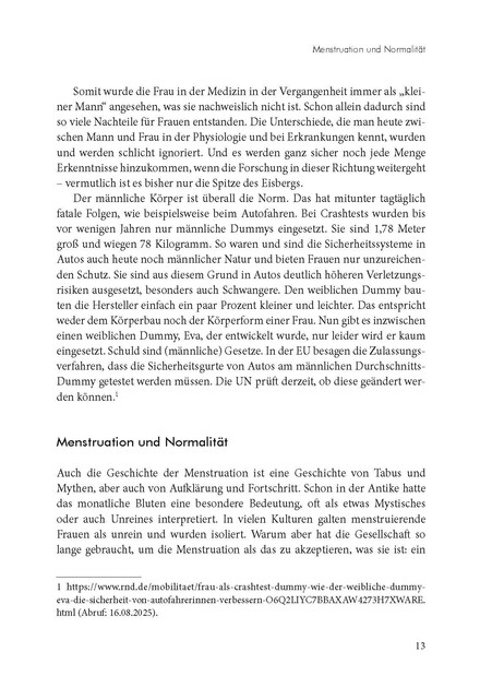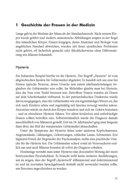 ...alles anzeigendikamentenstudien unterrepräsentiert. Viele Krankheiten, die fast ausschließlich Frauen betreffen, werden in einem immer noch von Männern dominierten Gesundheitswesen nicht weiter erforscht. Viele Frauen fühlen sich in der ärztlichen Praxis nicht ernst genommen. Ihre Beschwerden werden abgetan, auf die Wechseljahre oder andere hormonelle Schwankungen geschoben oder als psychosomatisch kategorisiert. Frauen sind keine mysteriösen Wesen, bei denen die Hormone oder die Psyche schuld an allen gesundheitlichen Problemen sind, sondern es muss genauer hingeschaut werden, um die Symptome einordnen zu können. Wer weiß, dass Frauenkörper bei bestimmten Erkrankungen anders reagieren, kann schneller die richtige Diagnose stellen und die adäquate Therapie einleiten.Miriam Funk möchte für einen differenzierten Umgang mit weiblicher Gesundheit sensibilisieren und Frauen darin bestärken, ihre geschlechtsspezifischen Bedürfnisse zu vertreten.