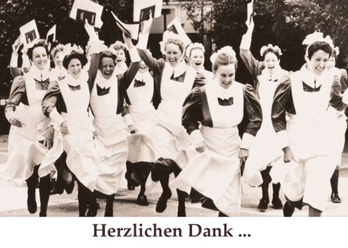 Postkarte mit den "Jubelnden Schwestern" und dem Text "Herzlichen Dank ..."