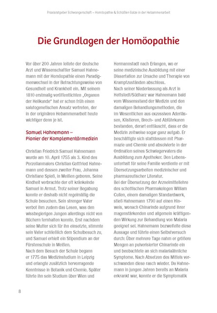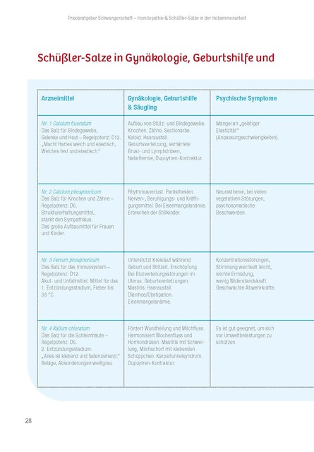 ...alles anzeigenHebammen. Bei Befindlichkeitsstörungen und Beschwerden bieten sie eine natürliche Erweiterung des medizinischen Repertoires.Dieses anwendungsorientierte und übersichtliche Buch der beiden Fachautorinnen liefert verlässliche Empfehlungen für die wichtigsten Beschwerden im Wochenbett und in der Stillzeit bei Mutter und Kind, wie etwa schmerzhafte Nachwehen, Wundheilungsstörungen bei Geburtsverletzungen, Milchstau, Nabelentzündungen und Zahnungsbeschwerden. Es kombiniert erstmals homöopathische Arzneimittel und Schüßler-Salze.Mit den vier Hauptkapiteln:1. Grundlagen der Homöopathie und der Mineralsalz-Therapie nach Schüßler2. Die Gesundheit der Mutter im Wochenbett3. Die Stillzeit4. Der SäuglingJedes Kapitel wird eingeleitet von einer Beschreibung der Beschwerden, Nennung von Symptomen und Maßnahmen. Darauf folgen empfohlene Homöopathische Arzneimittel und Schüßler-Salze mit Erläuterungen. Beratungs- und Behandlungstipps schließen das Kapitel ab.KlappentexteHebammen begleiten mit ihrem Wissen junge Mütter und Familien, um sie auf die Geburt und die Zeit danach ideal vorzubereiten. Homöopathie und Schüßler-Salze sind ein wichtiger Bestandteil in der Betreuung durch Hebammen. Bei Befindlichkeitsstörungen und Beschwerden bieten sie eine natürliche Erweiterung des medizinischen Repertoires.Dieses anwendungsorientierte und übersichtliche Buch der beiden Fachautorinnen liefert verlässliche Empfehlungen für die wichtigsten Beschwerden im Wochenbett und in der Stillzeit bei Mutter und Kind. Es kombiniert erstmals homöopathische Arzneimittel und Schüßler-Salze.