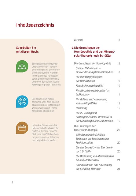 Alle Schwangerschaftsbeschwerden werden eingeleitet von einer Beschreibung sowie der Nennung von Ursachen, Symptomen und Maßnahmen. Darauf folgen bewährte homöopathische Arzneimittel und Schüßler-Salze inklusive Erläuterungen sowie weiterführende Beratungs- und Behandlungstipps. Erfahrungen aus der Hebammenpraxis im Rahmen der Geburtsvorbereitung schließen das Fachbuch ab.